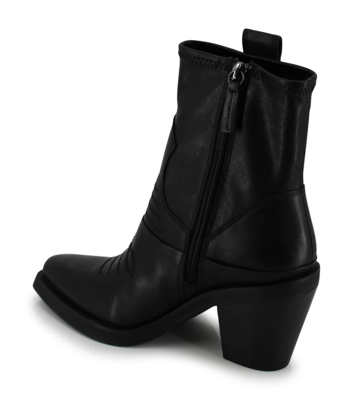 Черные ковбойские сапоги ASH Stivale Jagger - идеальный выбор для тех, кто любит стиль вестерн с современными элементами. Изготовленные из 100% кожи с вышивкой в тон, заостренный носок и квадратный каблук средней высоты придают силуэту элегантность. Цвет: черный. 100% кожа. Швы в тон. Каблук 7 см. Заостренный носок. Стандартная посадка.