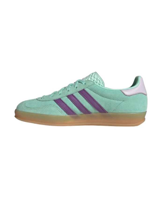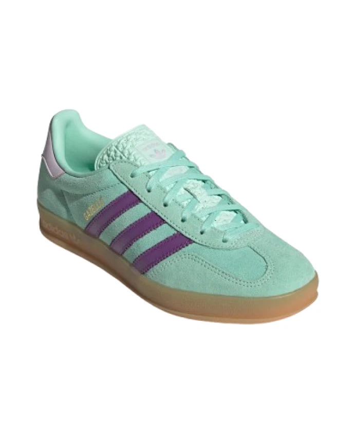 Поднимите свой стиль на новый уровень с этими замшевыми кроссовками Gazelle Indoor W бирюзового цвета от Adidas. Созданные для современной женщины, эти кроссовки имеют закругленный носок, шнуровку спереди, белые боковые детали и контрастную плоскую резиновую подошву. Изготовлены из 100% кожи и резины. Доступны в американских размерах.