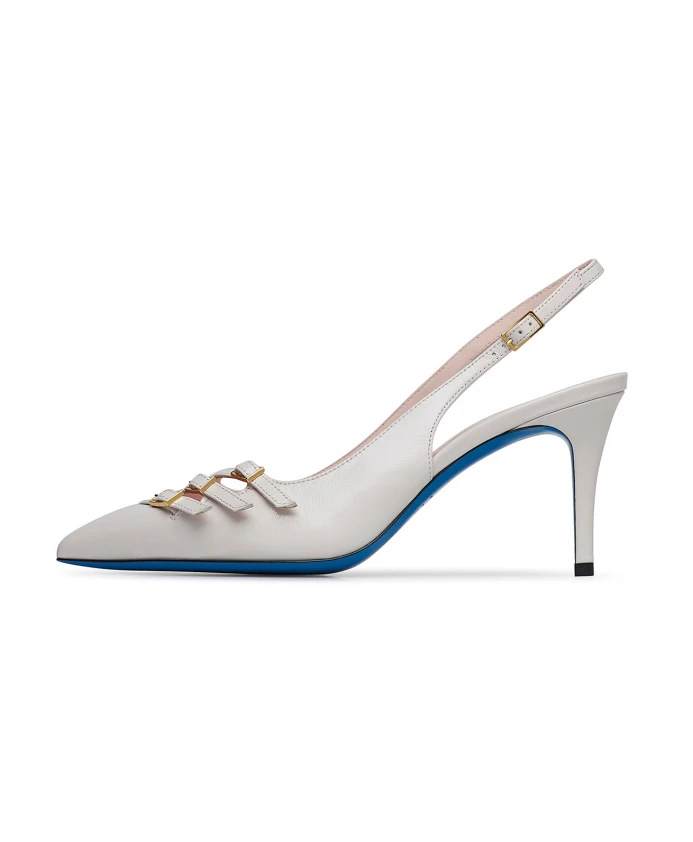 Туфли-лодочки Loriblu с ремешком на пятке выполнены из кожи и имеют классический силуэт, что делает их подходящими как для дневного, так и для вечернего выхода. Дизайн отличается чистыми линиями и универсальностью, подходящей для современного гардероба. Ключевые характеристики: Белый | Кожа | Ремешок на пятке | Состав и уход: Кожа