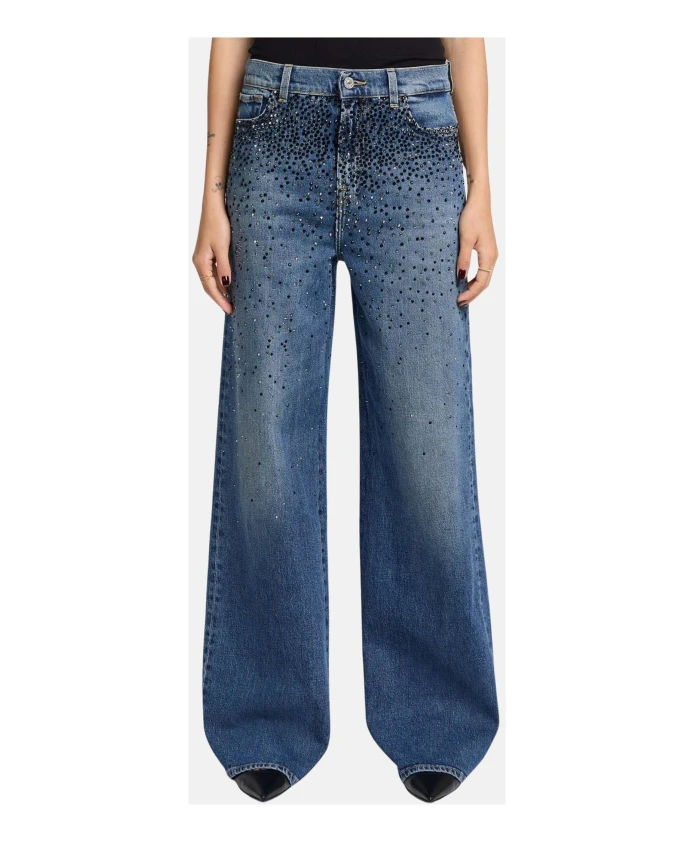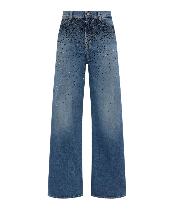 Джинсы 7 For All Mankind Wide, украшенные кристаллами Swarovski. Эти джинсы со средней посадкой и широкими штанинами добавят элегантности классическому дениму, создавая изысканный повседневный образ. Ключевые особенности: Синий | Средне-синий | Украшение кристаллами Swarovski | Размеры и посадка: Средняя посадка | Широкие штанины