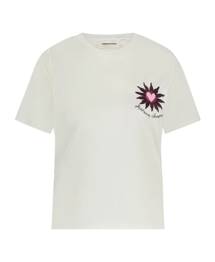 Футболка Fabienne Chapot Bernard Sun станет стильным дополнением к любому гардеробу. Она имеет классический круглый вырез и игривый логотип солнца на груди. Эта универсальная вещь добавит жизнерадостности любому образу. Ключевые характеристики: Кремово-белый | Белый | Классический круглый вырез | Игривый логотип солнца на груди |
