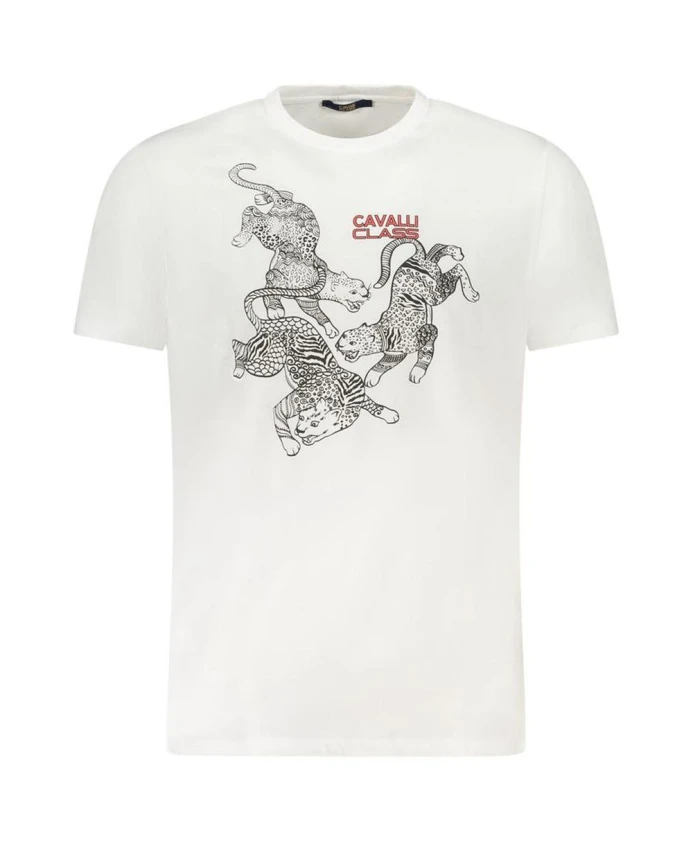 Обновите свой гардероб с помощью элегантной футболки с короткими рукавами Cavalli Class. Эта белоснежная футболка, созданная для современных законодателей моды, имеет круглый вырез, который служит фоном для смелого принта и культового логотипа, сочетая в себе комфорт и стиль. Идеально подходит для тех, кто не боится выделяться.