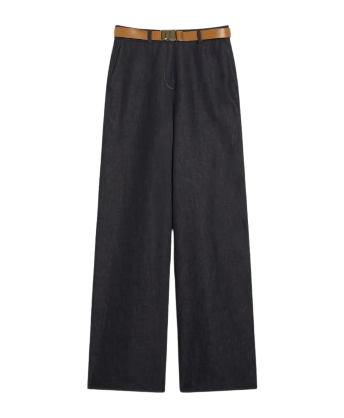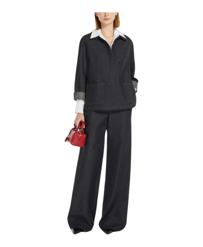 Синие брюки из хлопка и льна Max Mara Studio, синий 26 547₽