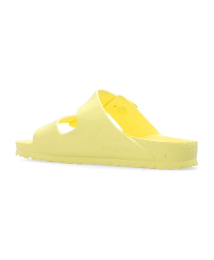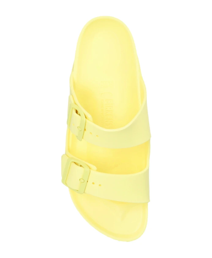 Встречайте лето с этими желтыми женскими сандалиями-балетками Birkenstock 'Arizona'. Эти сандалии с двумя регулируемыми ремешками с желтыми пряжками изготовлены из сверхлегкого, приятного для кожи и водонепроницаемого материала EVA. Анатомическая стелька из EVA обеспечивает комфорт и поддержку. Размер: Маленький, узкая ширина.