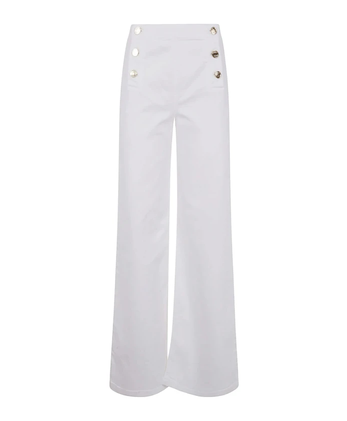 Стильные белые брюки-двойка для женщин. Изготовлены в Италии из 99% хлопка и 1% эластана, имеют застежку на пуговицы и задние карманы. Широкие штанины, длина внутреннего шва 28 см, длина штанины 86 см и ширина штанины 33 см делают их идеальным выбором для создания непринужденно-шикарного образа, подходящего для любого случая.