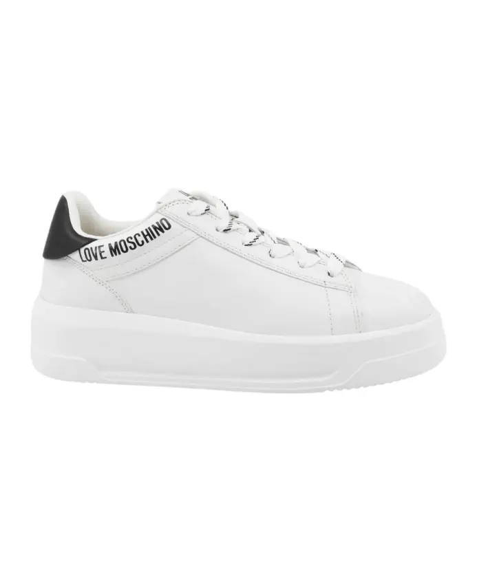 Кроссовки Love Moschino - белые кожаные кроссовки на каждый день, с кожаным верхом, подкладкой из ткани и кожи и резиновой подошвой для надежного сцепления. Ключевые характеристики: Белый | Кожа | Резиновая подошва | Размеры и посадка: Высота каблука: 3 см | Состав и уход: Верх: Кожа | Подкладка: Ткань/Кожа | Подошва: Резина