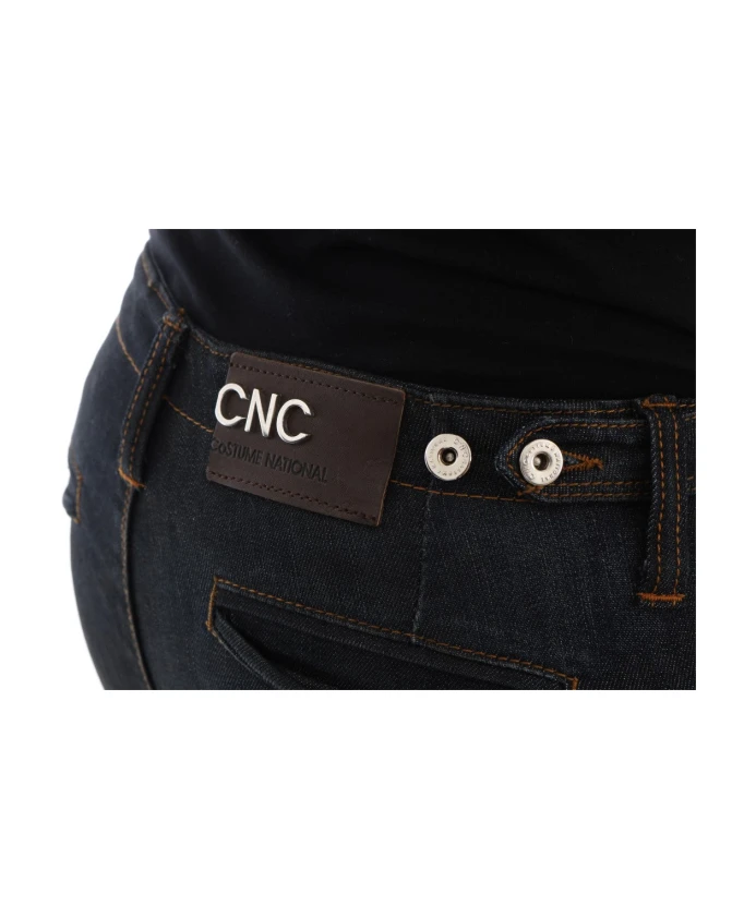 Джинсы-скинни Costume National C'N'C темно-синего цвета, изготовленные из эластичной хлопковой смеси для облегающего, стройного силуэта. Ключевые особенности: Темно-синий | Хлопок | Эластичный материал | Застежка на молнию и пуговицу | Детали с логотипом | Размеры и посадка: Узкий крой | Состав и уход: 99% хлопок, 1% эластан