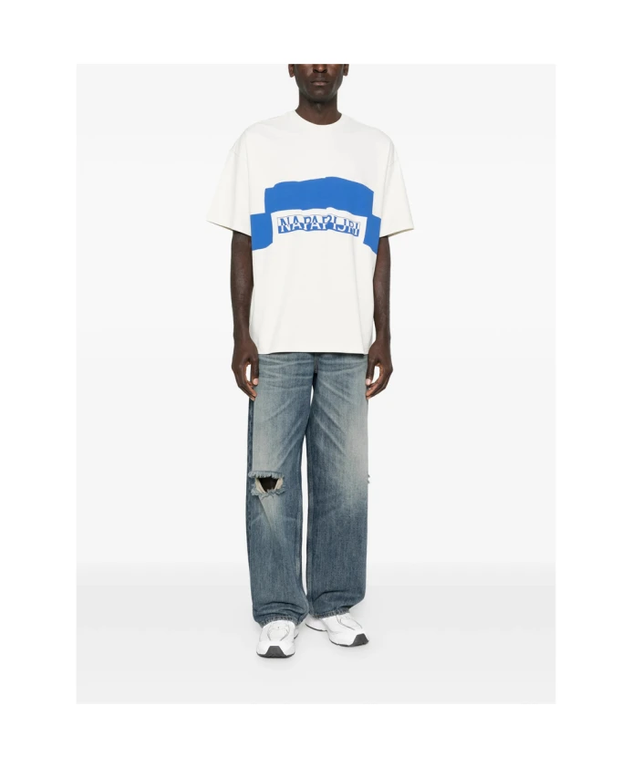Футболка Napapijri: футболка с круглым вырезом, короткими рукавами, фирменным логотипом и прямым низом, предназначенная для повседневной носки. Ключевые особенности: Белый | Синий | Хлопок | Дышащая ткань | Ребристые манжеты и нижний край | Круглый вырез | Короткие рукава | Логотип | Прямой низ | Состав и уход: 100% хлопок