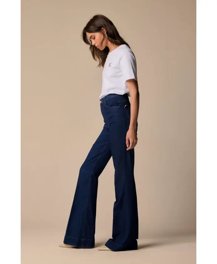 Откройте для себя джинсы GRAZIA от Kocca - стильное дополнение к вашему гардеробу с высокой посадкой и классическим расклешенным кроем, идеально подходящее для создания разнообразных образов. Ключевые особенности: Темный деним | Синий | Джинсовый | Высокая посадка | Расклешенные штанины | Размеры и посадка: Высокая посадка