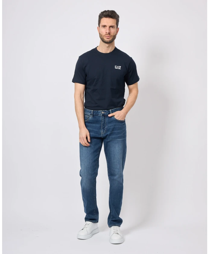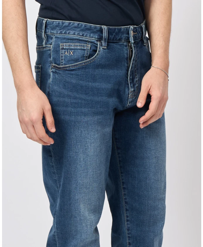 Подчеркните свой повседневный стиль с помощью этих прямых джинсов Armani Exchange для мужчин. Изготовленные из 99% хлопка и 1% эластана, эти джинсы с пятью карманами украшены вышитым логотипом на кармане, имеют темный оттенок и стандартный крой. Модель носит размер 34 US (+14 для итальянских размеров) и имеет рост 185 см.