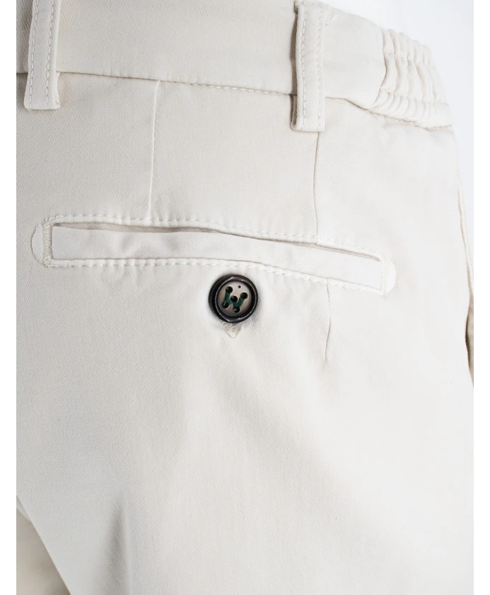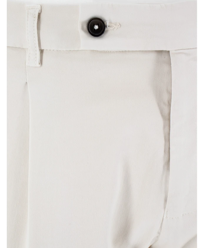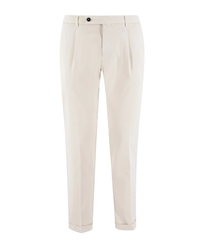Обновите свой гардероб этими мужскими брюками от Berwick. Изготовленные в Италии из технической эластичной ткани, эти чиносы зауженного кроя обеспечивают исключительный комфорт. Они имеют задний карман на молнии, эластичный пояс на шнурке и застежку на молнию и пуговицу. Состав ткани: 51% хлопок, 46% вискоза, 3% эластан.