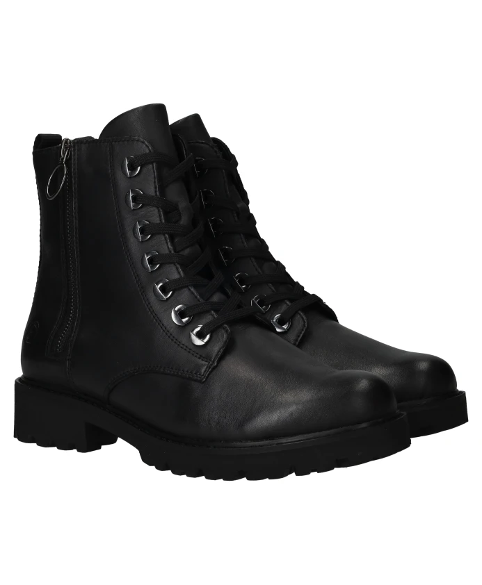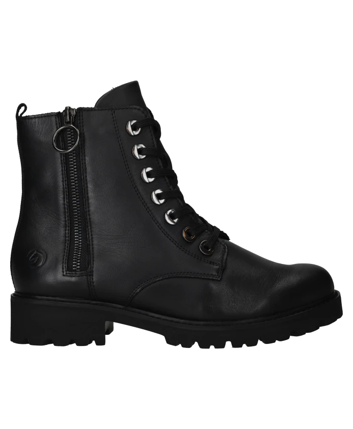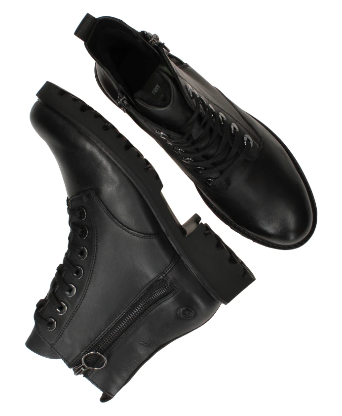 Подчеркните свой стиль с помощью этих черных женских ботинок Remonte на шнуровке. Идеально сочетаются с джинсами или элегантным платьем. Ботинки имеют кожаный верх и мягкую текстильную подкладку. Съемная стелька обеспечивает дополнительный комфорт, а сочетание шнурков и молнии позволяет легко надевать и снимать ботинки.