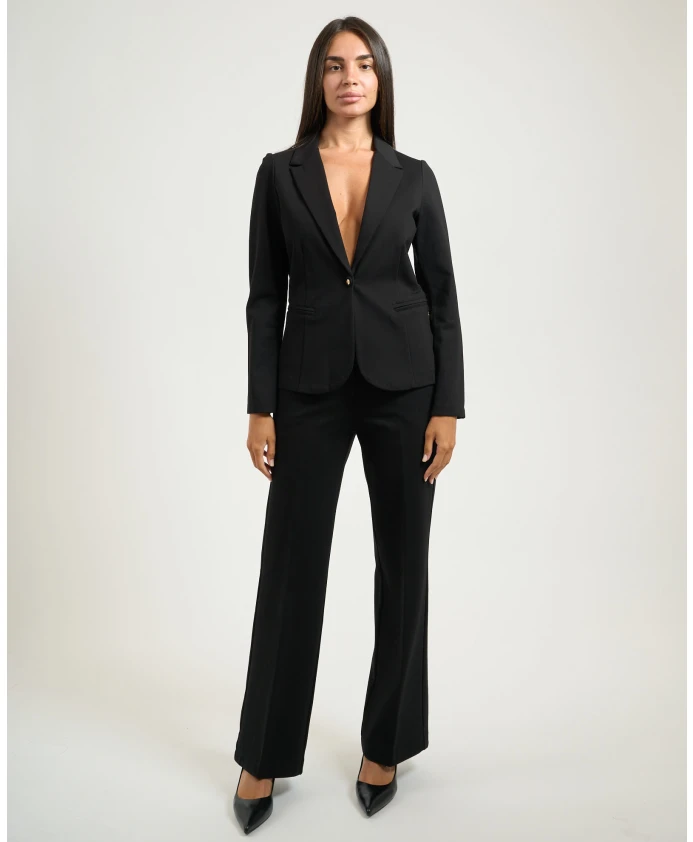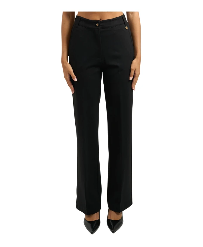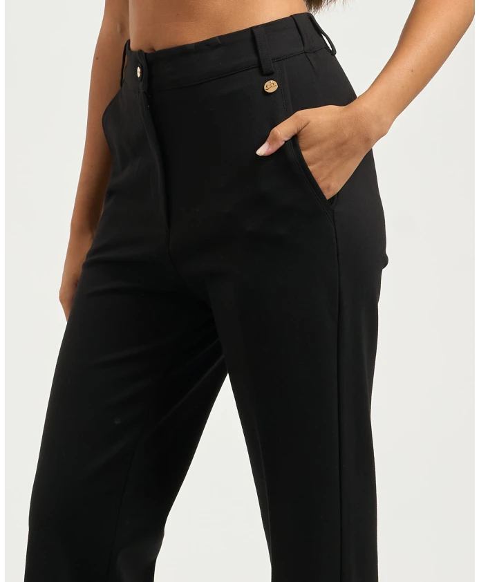 Подчеркните свой стиль с помощью этих широких брюк-палаццо для женщин от YES ZEE. Они выполнены из миланского трикотажа, имеют застежку на пуговицу и молнию, боковые и задние карманы, а также декоративный брелок с логотипом. Дополните свой образ подходящим жакетом (код: G009-CE000801), который также доступен в продаже.