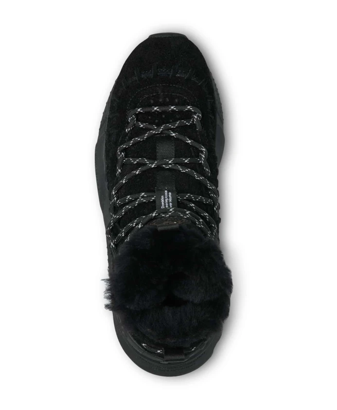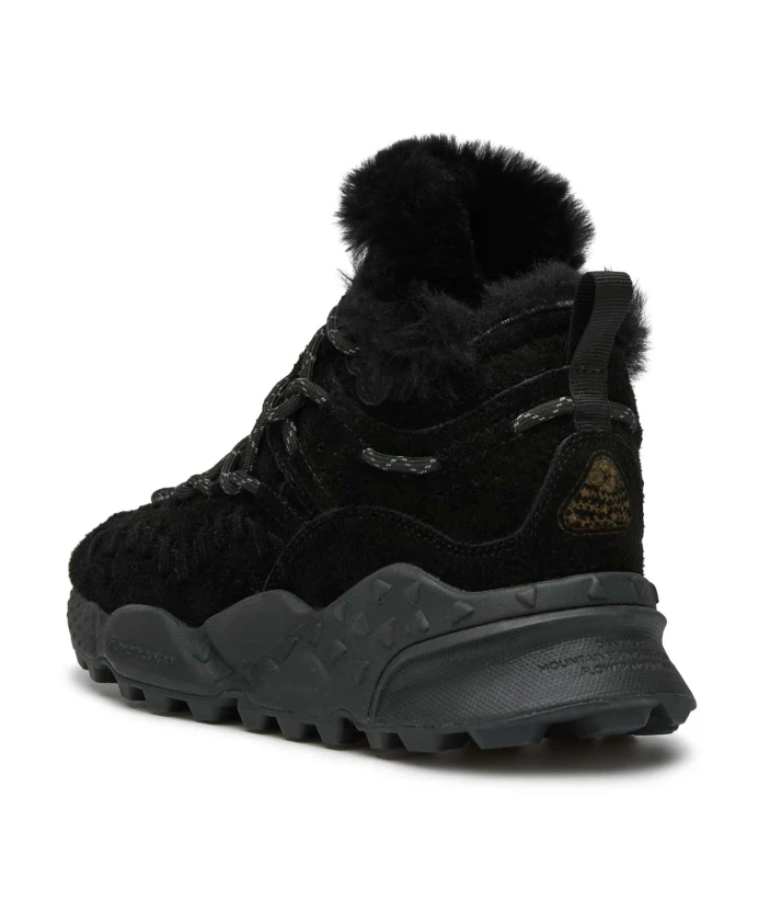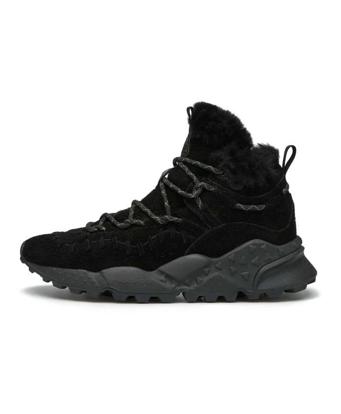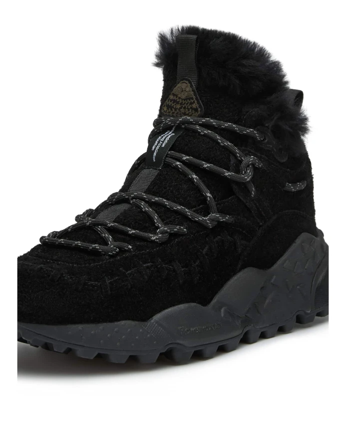 Высокие треккинговые кроссовки с замшевым верхом и фирменной строчкой в тон. Подкладка из мериносовой шерсти и сверхлегкая резиновая подошва с зубчатым протектором дополняют дизайн. Натуральная антибактериальная пробковая стелька. Обувь Flower Mountain обычно большемерит; рекомендуется заказывать на один размер меньше.