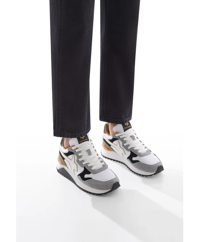 Встретьтесь лицом к городским джунглям со всей мощью этих удобных кроссовок из технической ткани и замши, дополненных толстой, сверхлегкой резиновой подошвой. Металлические люверсы и массивные шнурки подчеркивают спортивный дух модели, который дополнительно усиливается цветовым контрастом нашивки и спойлера под пяткой.