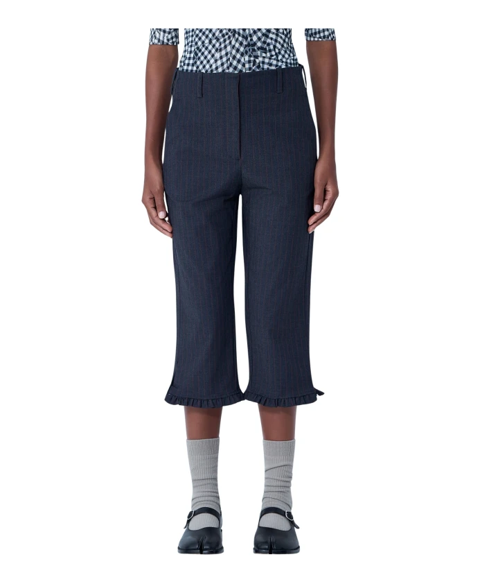 Укороченные брюки в полоску с эластичной вставкой Ganni, серый