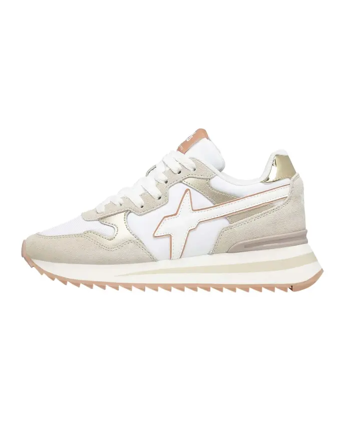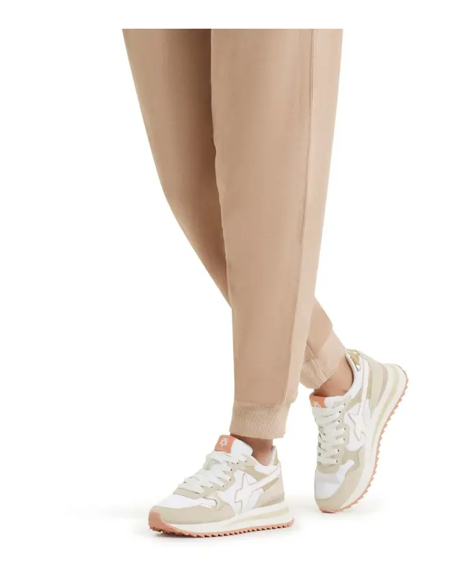 Спортивные линии и гламурный стиль в одном дизайне. Эти кроссовки, изготовленные из технической ткани и замши, добавляют модный штрих благодаря контрастным деталям на верхней части. Комфорт обеспечивается приподнятой резиновой подошвой, дополненной графическими деталями. На зубчатой подошве вытиснен логотип бренда.