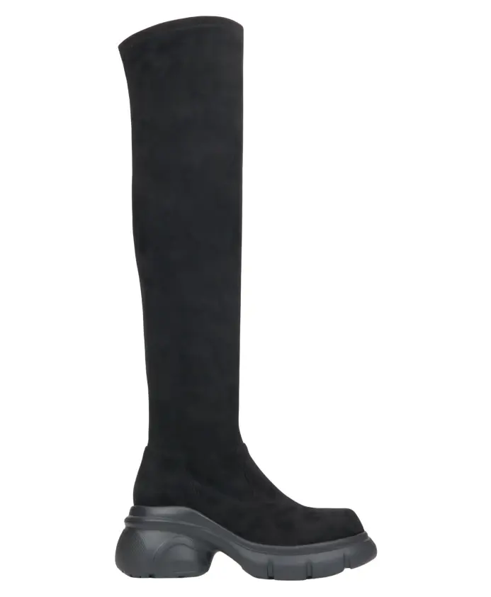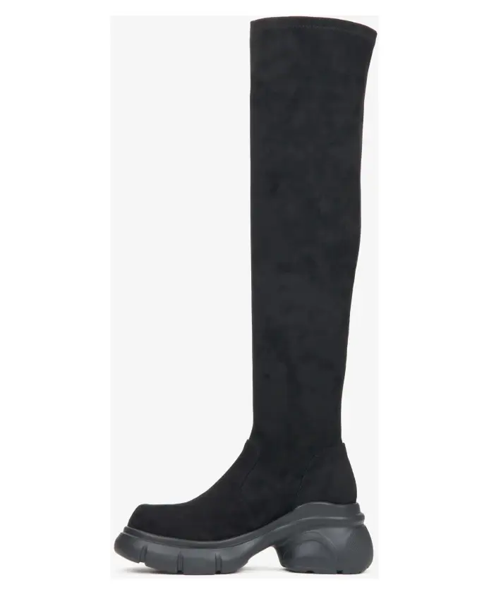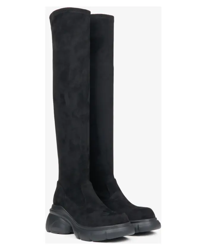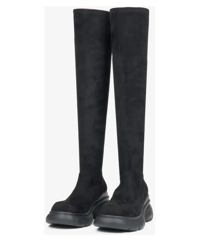 Подчеркните свой стиль с помощью этих черных ботфортов из роскошной замши, созданных для комфорта и элегантности. Платформа обеспечивает высоту и прочность, идеально подходящие для любого случая. Ключевые особенности: Черный цвет | Натуральная замша | Платформа | Состав и уход: Натуральная замша | Эластичная ткань