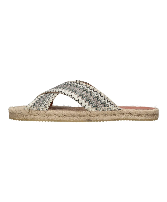Подчеркните свой летний стиль с помощью этих шлепанцев Missoni. Верх из ткани с зигзагообразным узором и подкладка из декоративной ткани делают эти мюли идеальным выбором для современного мужчины. Резиновая подошва обеспечивает долговечность. Обратите внимание: цвет ткани с зигзагообразным узором может отличаться.