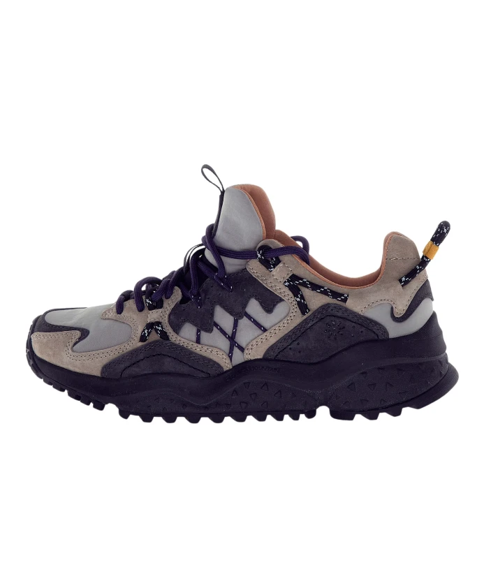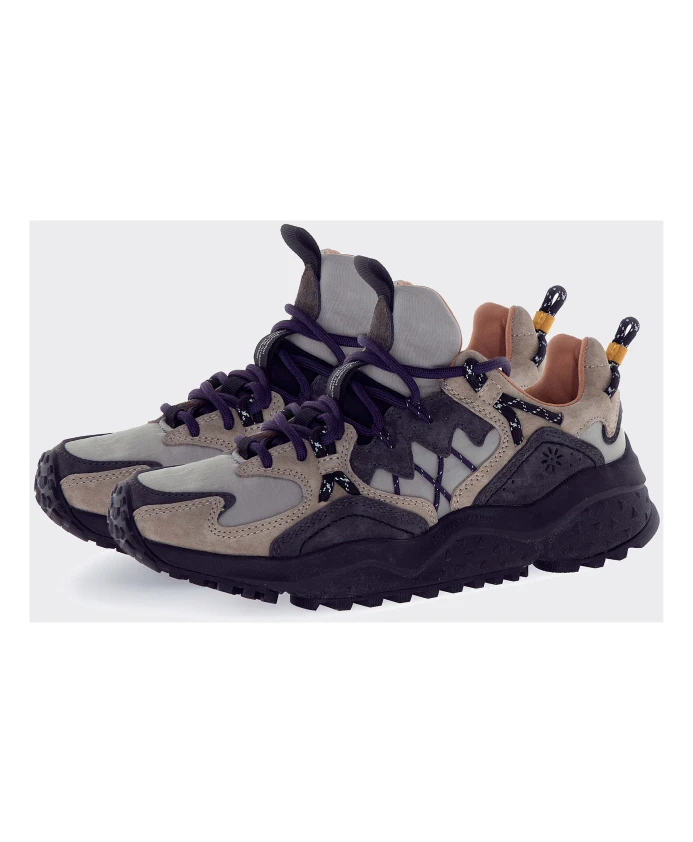 Подчеркните свой стиль с помощью этих мужских кроссовок Flower Mountain. Изготовленные из замши и нейлона в темно-сером и светло-сером оттенках, они имеют темные шнурки, тисненые боковые детали и мягкий язычок. Декоративные элементы украшают пятку, а подошва имеет рельефную форму. Логотип напечатан под подошвой.