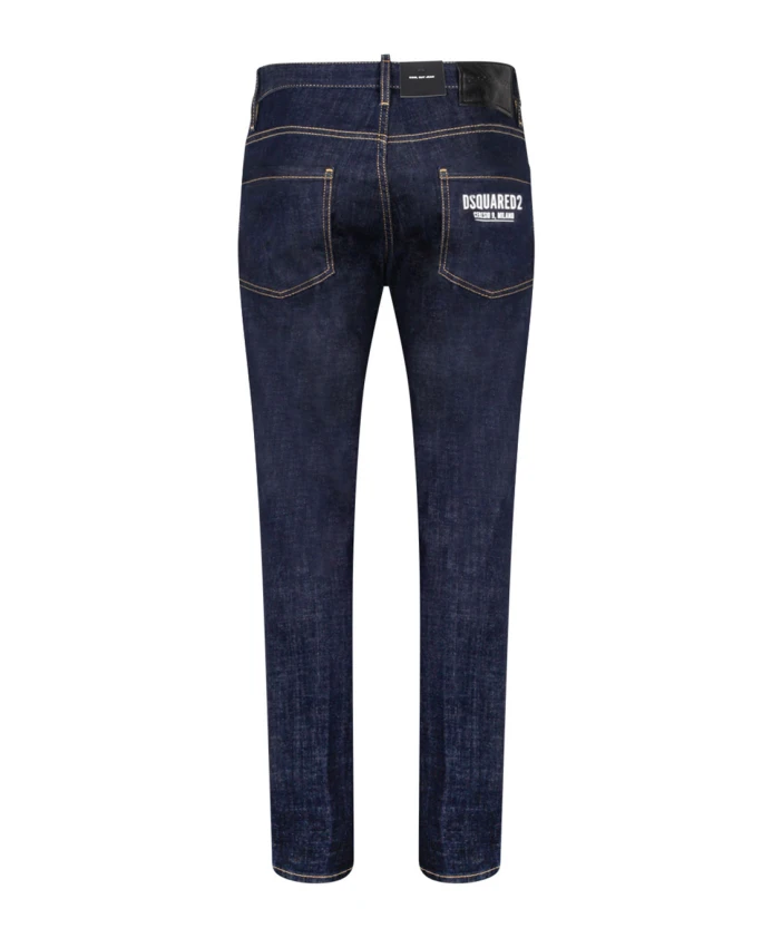 Подчеркните свой стиль с помощью этих узких джинсов Dsquared2 темно-синего цвета. Изготовленные из темно-синей хлопковой смеси, эти джинсы украшены контрастной строчкой, нашивкой с логотипом спереди и надписью сзади. Узкий крой, застежка-молния и петли для ремня придают этой классической модели современный вид.