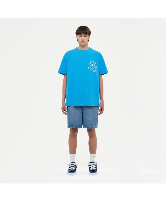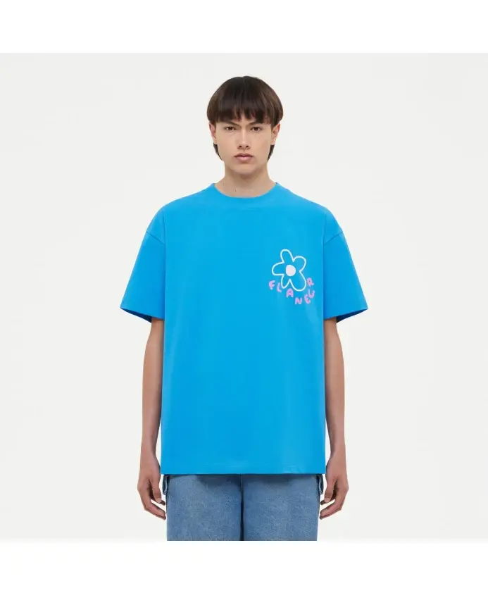 Оставайтесь стильными с этой мужской футболкой FLÀNEUR с уникальным принтом в виде цветущих растений синего цвета спереди и сзади. Изготовленная из 100% хлопка, эта футболка идеально подходит для повседневной носки. Доступна в размере L, как на модели ростом 187 см. Откройте для себя качество и стиль с FLÀNEUR.