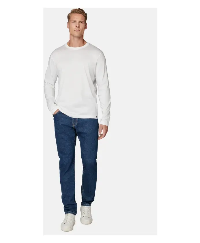 Джинсы Boggi Milano из эластичного денима - идеальное сочетание стиля и комфорта. Они изготовлены из эластичного хлопкового денима с контрастными швами для создания современного образа. Ключевые особенности: Средне-синий | Синий | Эластичный хлопковый деним | Контрастные швы | Размер и посадка: Зауженный крой