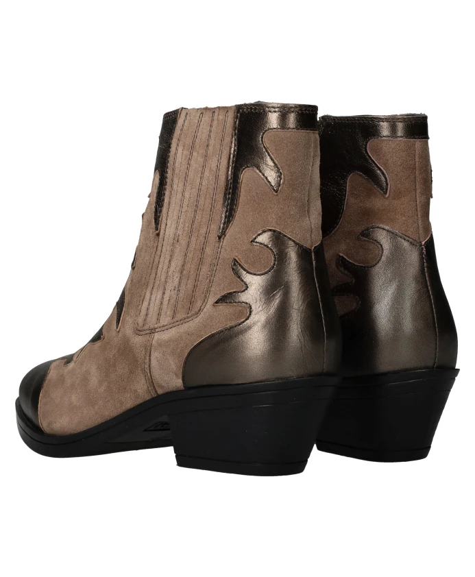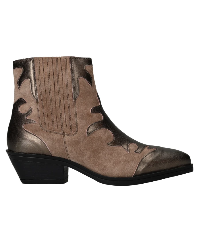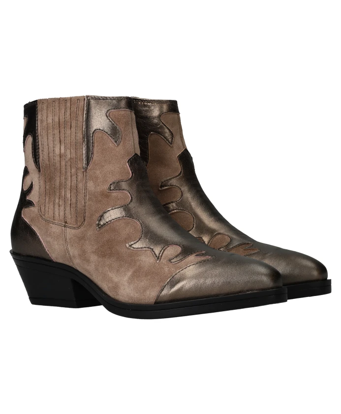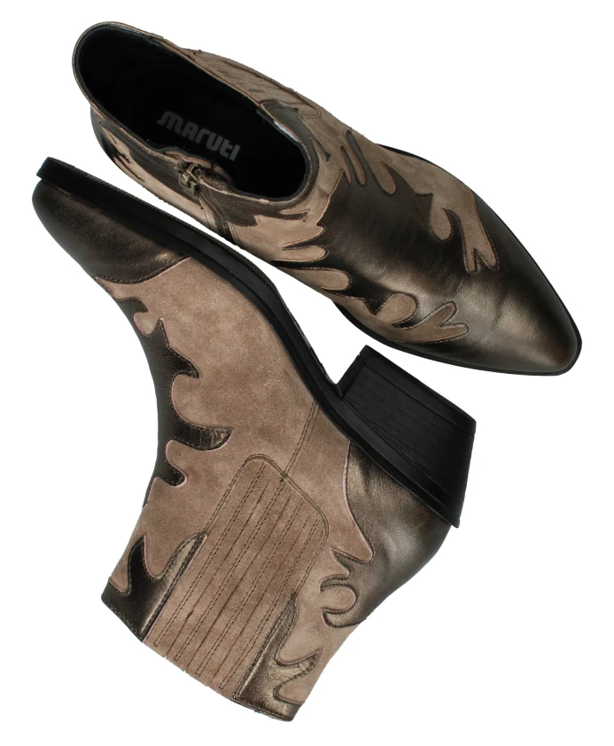 Ищете стильные ковбойские сапоги? Тогда эти сапоги Maruti Tessy - именно то, что вам нужно! Эти ботильоны выполнены в красивом бежевом цвете с металлическими деталями. Они имеют застежку-молнию и прочный каблук высотой 4 см. Изготовленные из натуральной кожи, эти сапоги идеально подойдут современной ковбойке.