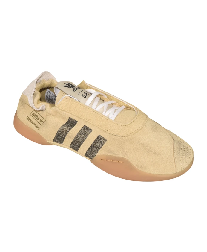 Кроссовки Adidas Taekwondo Mei из коллаборации Song For The Mute - низкопрофильные слипоны, воплощающие наследие боевых искусств с винтажным и потертым видом. Ключевые особенности: Бежевый | Песочный | Резиновая подошва | Конструкция без шнурков | Низкий силуэт | Винтажный, потертый вид | Повседневный каблук