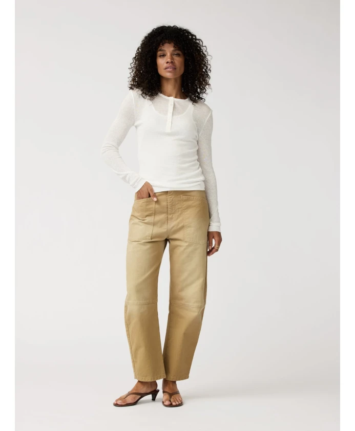 Стильные джинсы прямого кроя с эффектом потертости песочного цвета. Объемный силуэт и зауженные штанины придают этим джинсам крутой вид, который легко сочетать с любой одеждой - от повседневной до элегантной. Изготовлены из 100% испанского хлопка - особого и прочного материала с приятной на ощупь текстурой.