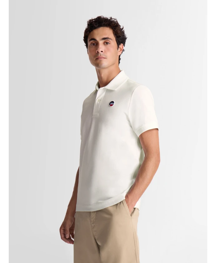 Поло Elbin, изготовленное из хлопкового пике, сочетает в себе элегантность и комфорт благодаря своему приталенному крою. Оно выполнено из классического эластичного трикотажа пике, имеет воротник-поло на пуговицах и двубортную застежку. Нагрудный значок Capsule 52 добавляет изысканности и индивидуальности.