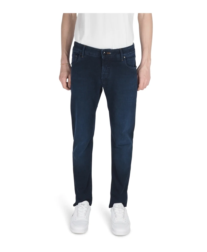 Тщательно отобранные джинсы-скинни глубокого синего цвета для мужчин. Сделано в Италии из эластичного хлопкового денима. Темно-синяя ткань, 5 карманов, петли для ремня и застежка на пуговицу. Код товара: ORVIETO. Рост модели 185 см, размер 31. Нажмите здесь, чтобы посмотреть другие модели мужских джинсов.
