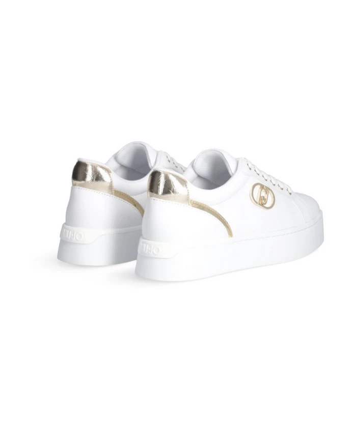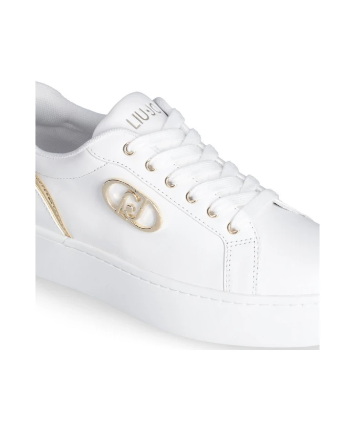 Подчеркните свой стиль с помощью этих элегантных белых кожаных кроссовок на платформе от Liu Jo, украшенных эффектным золотым логотипом и ламинированными вставками, придающими им нотку роскоши. Ключевые особенности: Белый | Кожа | Золотой логотип | Ламинированные вставки | Блестящий спойлер с логотипом |