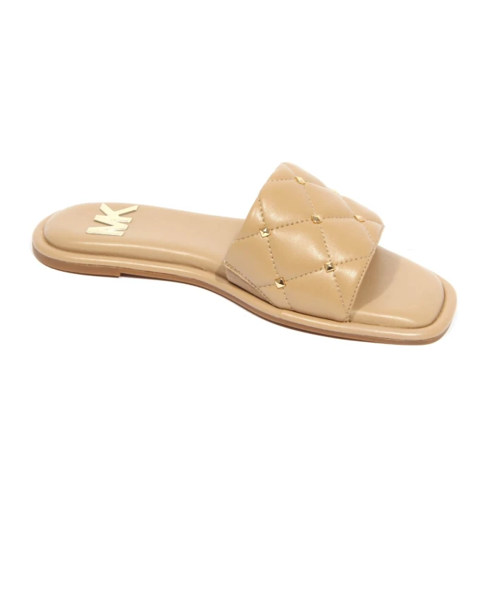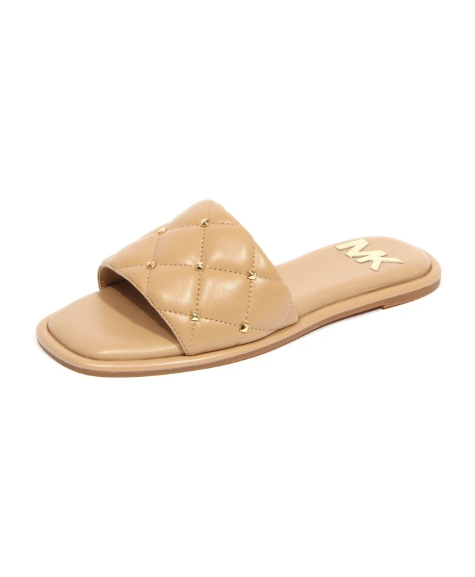 Создайте безупречный стиль с помощью сандалий Michael Kors Hayworth Slide, украшенных изящными миниатюрными пирамидальными заклепками и выполненных в универсальном бежевом оттенке. Ключевые особенности: Бежевый цвет | Стеганая искусственная кожа | Миниатюрные заклепки | Ремешки | Круглый открытый носок