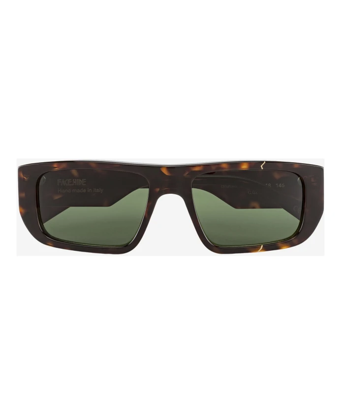 Подчеркните свой стиль с помощью солнцезащитных очков Face.hide. Изготовленные из ацетата с использованием японской техники кинцуги, эти очки унисекс имеют широкий горизонтальный узор с логотипом коричневого и зеленого цвета. Произведенные в Италии из 100% ацетата, эти очки подойдут для всех размеров.
