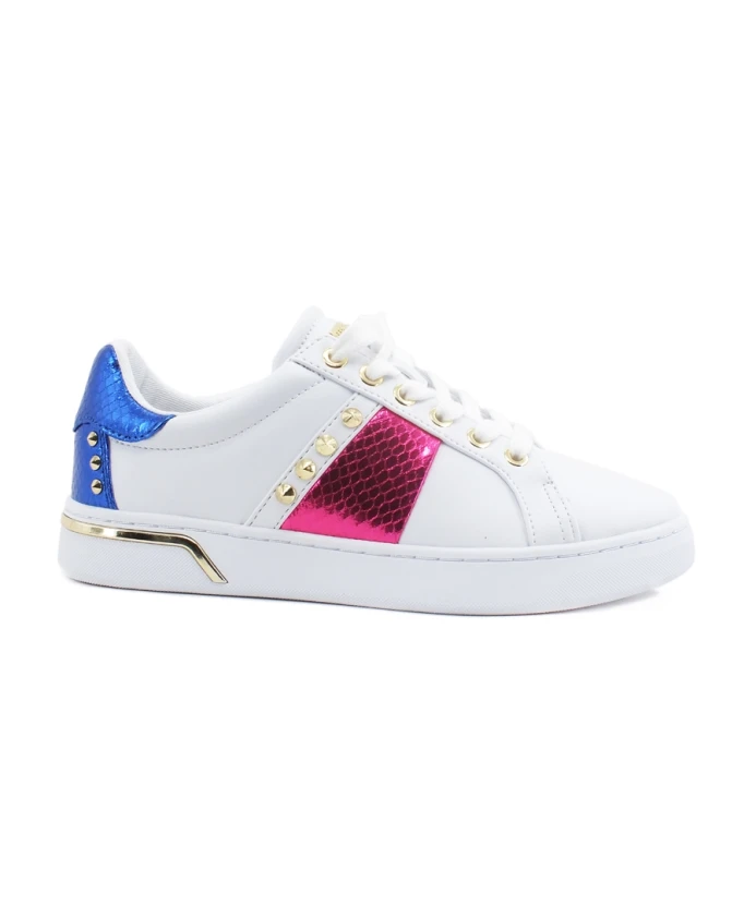 Кожаные кроссовки Guess с закругленным носком и шнуровкой. Созданы для повседневного образа, имеют текстильную подкладку и резиновую подошву. Ключевые особенности: Белый | Белый | Фуксия | Синий | Кожа | Шнуровка | Закругленный носок | Состав и уход: Верх: Кожа | Подкладка: Текстиль | Подошва: Резина