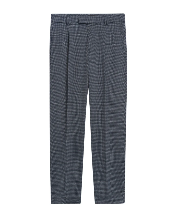 В этом сезоне мужские брюки CINQUE представлены в характерном для Италии непринужденном стиле с мелким узором «гусиная лапка». Широкий современный крой, одна складка на поясе, французские карманы спереди и прорезные карманы сзади дополняют дизайн. Состав ткани: 83% полиэстер, 12% вискоза, 5% эластан.