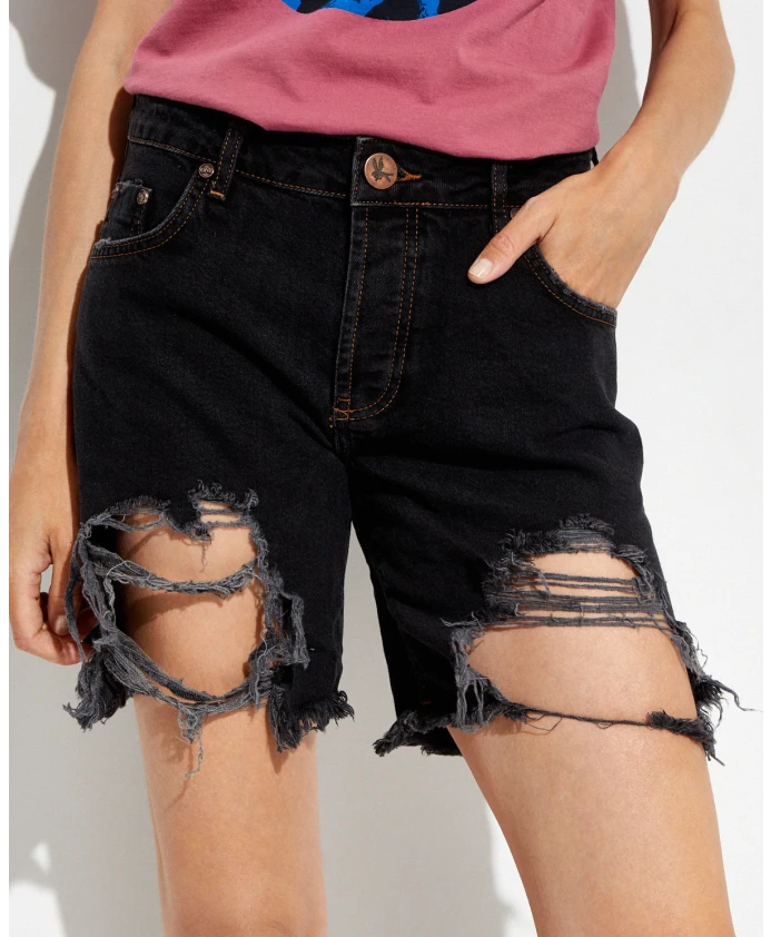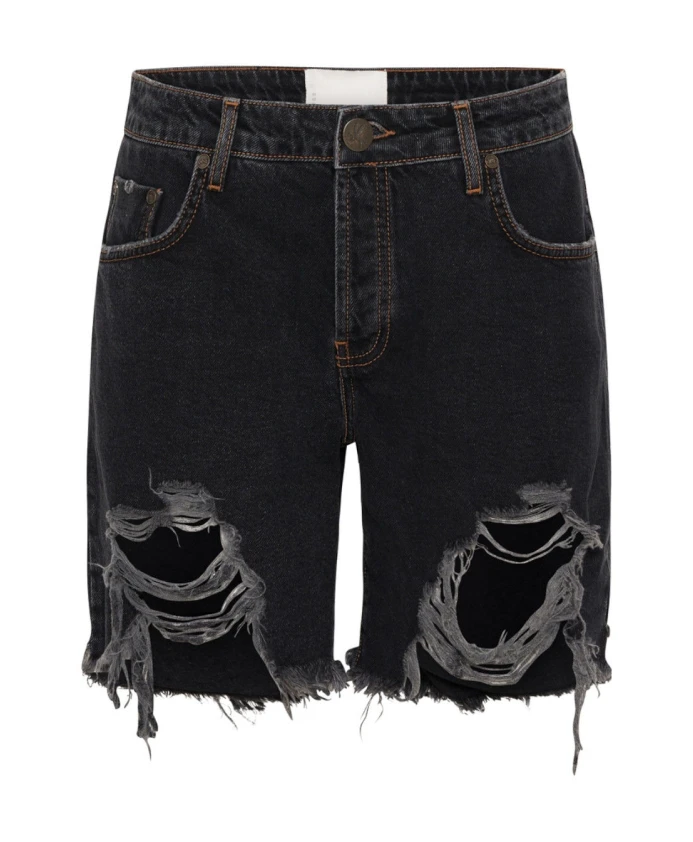 Джинсовые шорты One Teaspoon Stevies черного цвета для женщин. Эти шорты со средней посадкой имеют застежку на пуговицу и молнию, два передних и два задних кармана, необработанный край и длину до середины бедра. Изготовлены из хлопка и переработанного хлопка. Длина спереди: 37 см, длина сзади: 43 см.