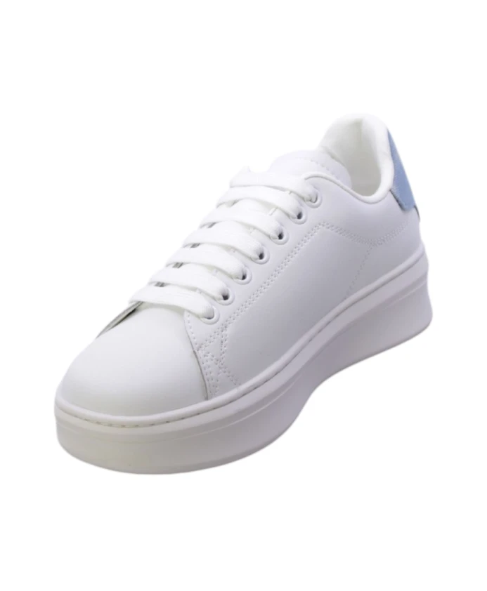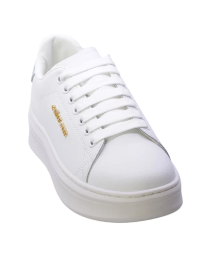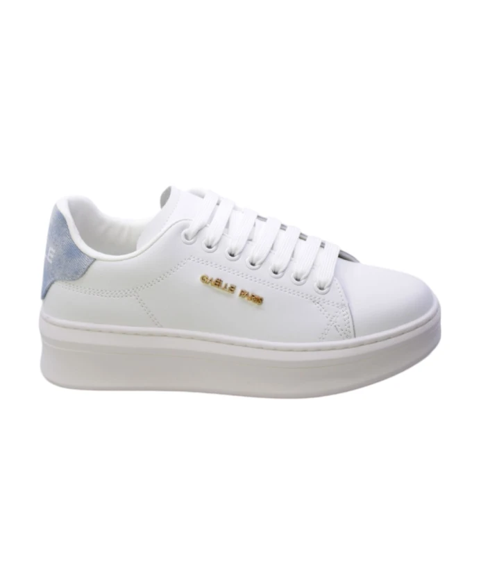 Белые кроссовки Gaèlle Paris из искусственной кожи с джинсовым верхом, украшенные логотипом, боковой накладкой с логотипом, 7 усиленными люверсами и белыми и/или фирменными сменными шнурками, подкладкой из искусственной кожи, съемной стелькой из искусственной кожи и резиновой подошвой высотой 40 мм.
