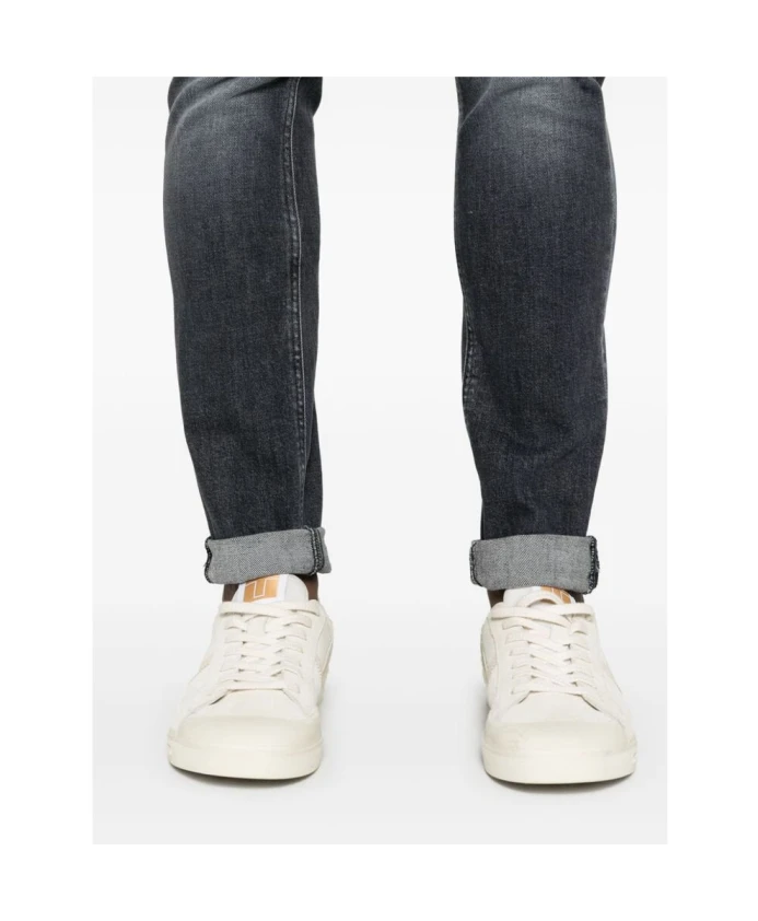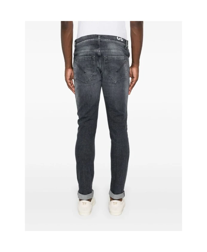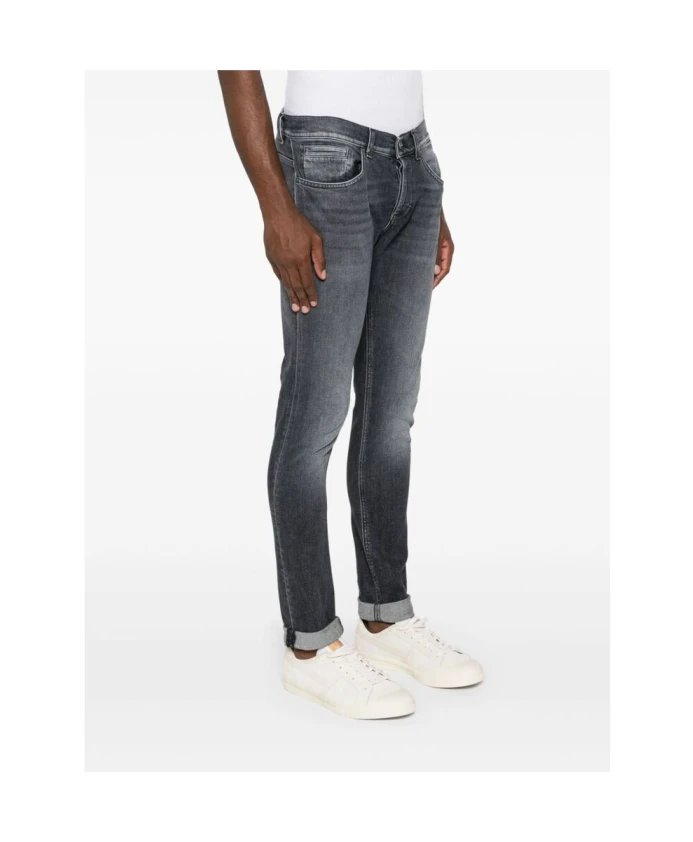 Подчеркните свой стиль с помощью этих зауженных джинсов Dondup для мужчин. Изготовленные из темно-серого эластичного хлопкового денима с эффектом потертости, эти джинсы имеют рваные детали, среднюю посадку на талии, застежку на пуговицы, петли для ремня, классические пять карманов и зауженный крой.