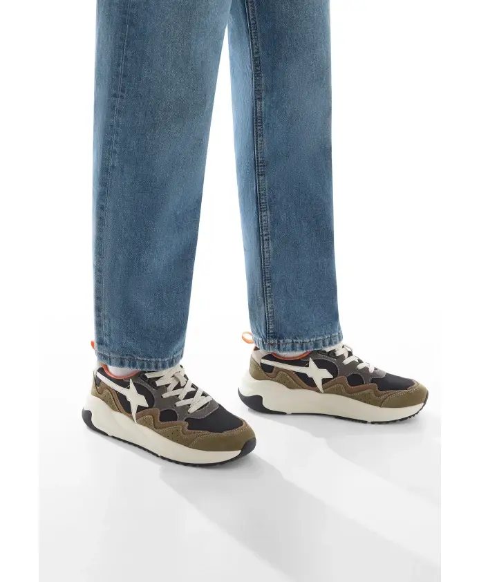 Эти кроссовки, изготовленные из замши и технологичной ткани, сочетают в себе динамичный стиль и повседневный комфорт. Тканевая подкладка и стелька мягко облегают стопу, а резиновая подошва обеспечивает устойчивость при каждом шаге. Практичная шнуровка позволяет подогнать кроссовки под любой случай.