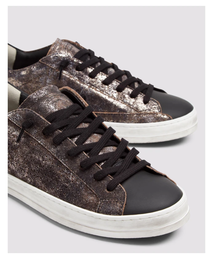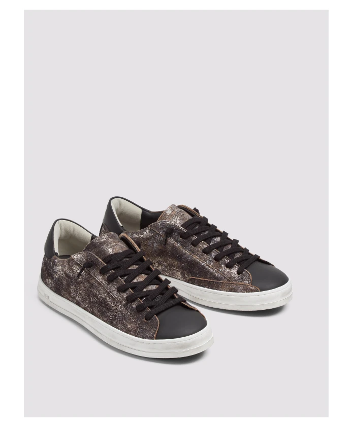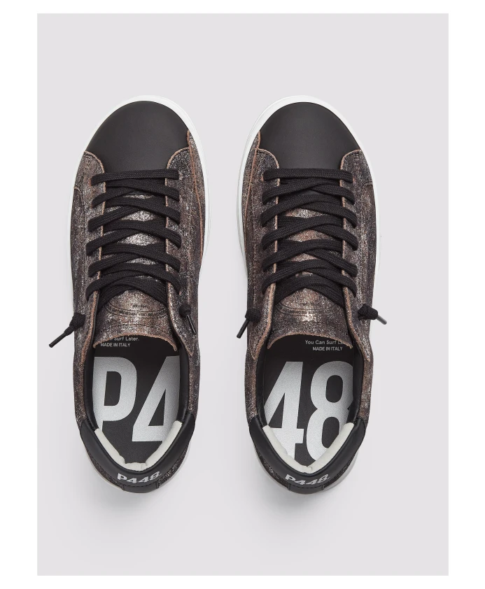 Подчеркните свой стиль с помощью женских кроссовок P448 John Black/Rame. Изготовленные из черной и серебристой кожи с соответствующим язычком, эти кроссовки имеют черный кожаный носок и задник. Завершают образ черные хлопковые шнурки и фирменная резиновая подошва ручной работы с черным протектором.