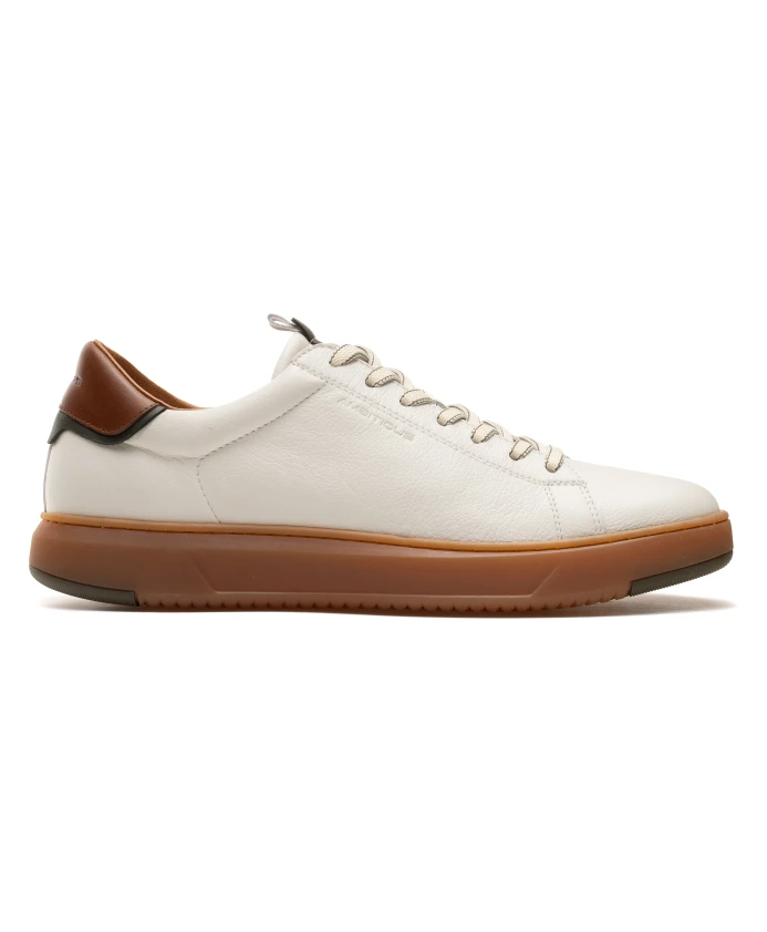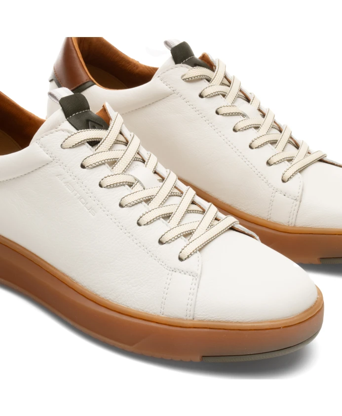 Aktif - это низкие кроссовки, в которых особое внимание уделено комфорту и гибкости. Однотонный кожаный верх расположен на очень гибкой подошве, обеспечивающей надежное сцепление с землей. Контрастная подошва из натуральной резины добавляет ретро-стиль, а контрастная задняя панель завершает образ.