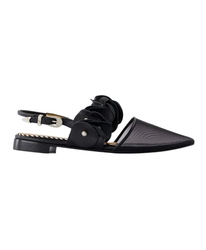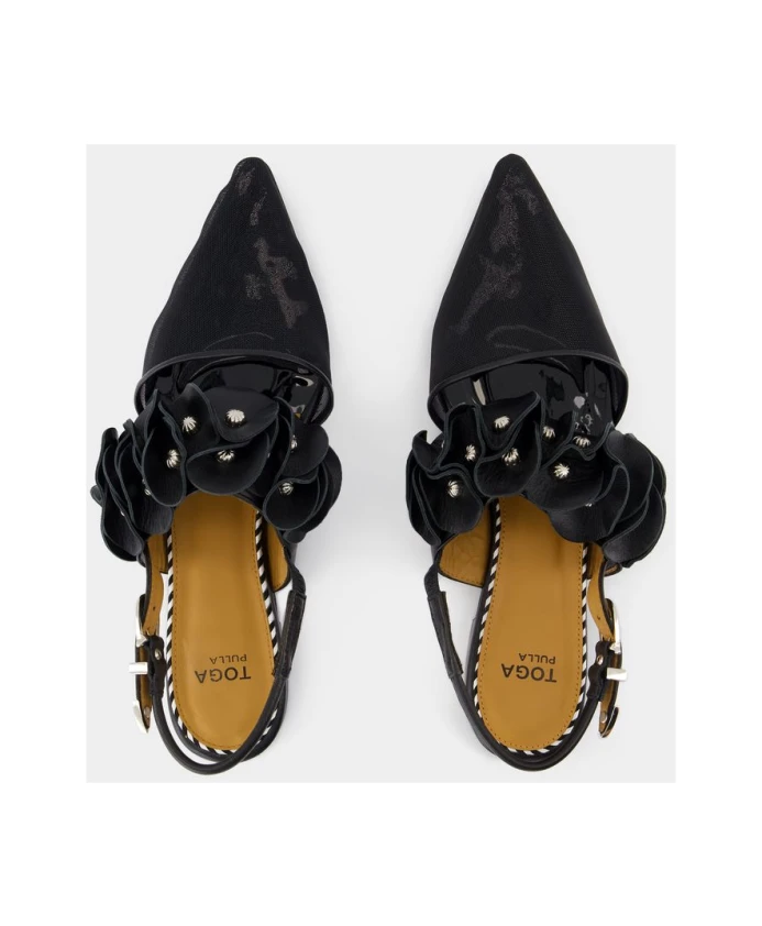 Подчеркните свой стиль с помощью этих классических черных балеток Toga Pulla. Изготовленные из сетчатой кожи с заостренным носком, эти балетки имеют резиновую подошву, кожаную подкладку и кожаную стельку. Размер соответствует французской размерной сетке. Идеально подойдут для современной женщины.