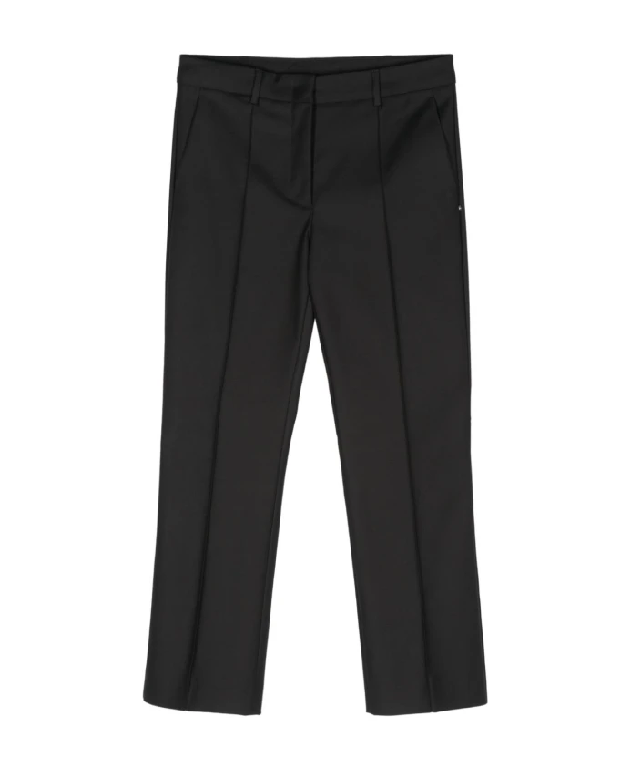 Брюки Sportmax Pantaloni Antony черного цвета прямого кроя из эластичного трикотажа с потайной застежкой на пуговицы спереди, застежкой на крючок и молнию, петлями для ремня, рельефной отделкой швов, двумя боковыми карманами по диагонали, двумя задними карманами и укороченным кроем для женщин.