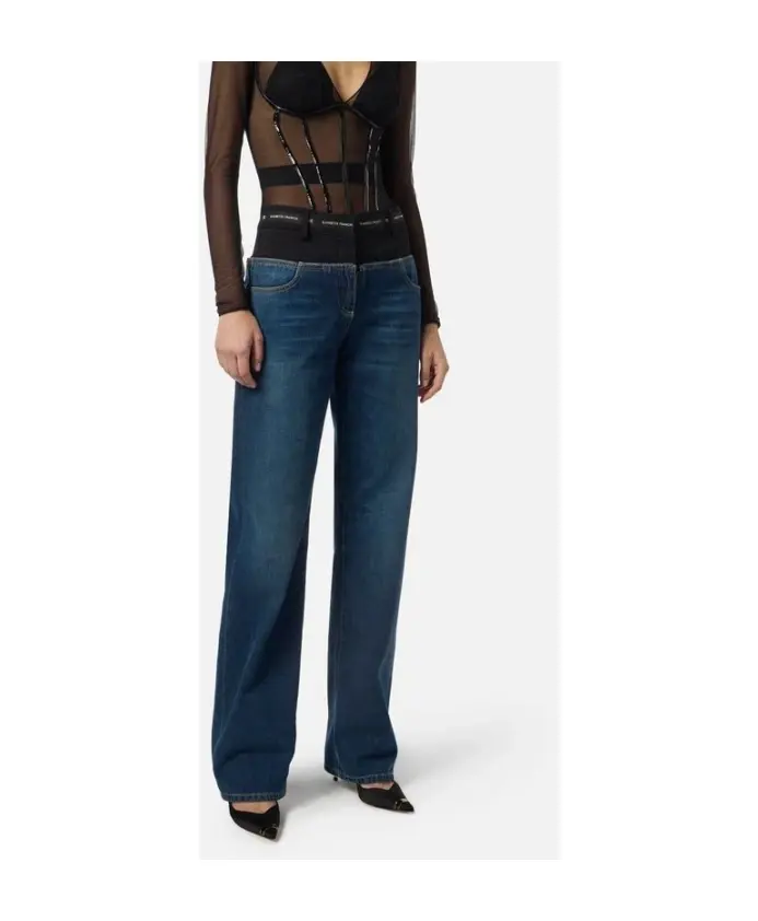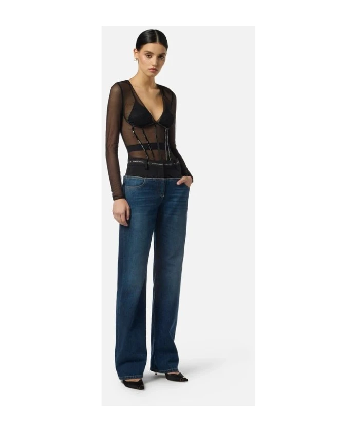 Джинсы-палаццо Elisabetta Franchi с низкой посадкой, стандартным кроем, и легким поясом из крепа, изготовленным из 100% хлопка. Ключевые особенности: Синий | Деним | Силуэт палаццо | Пояс из крепа | Размеры и посадка: Стандартный крой | Низкая талия | Состав и уход: Креп (100% хлопок) | Деним