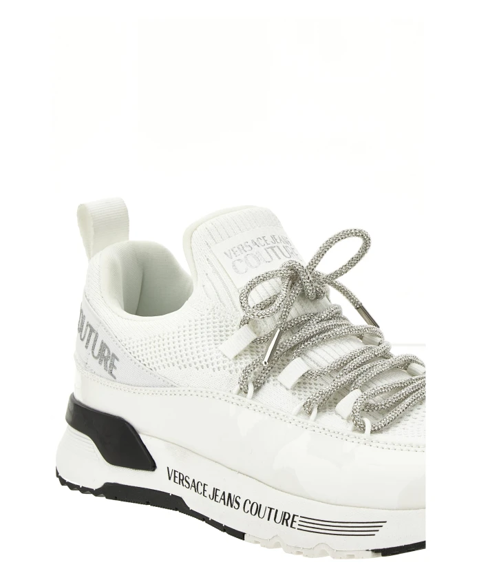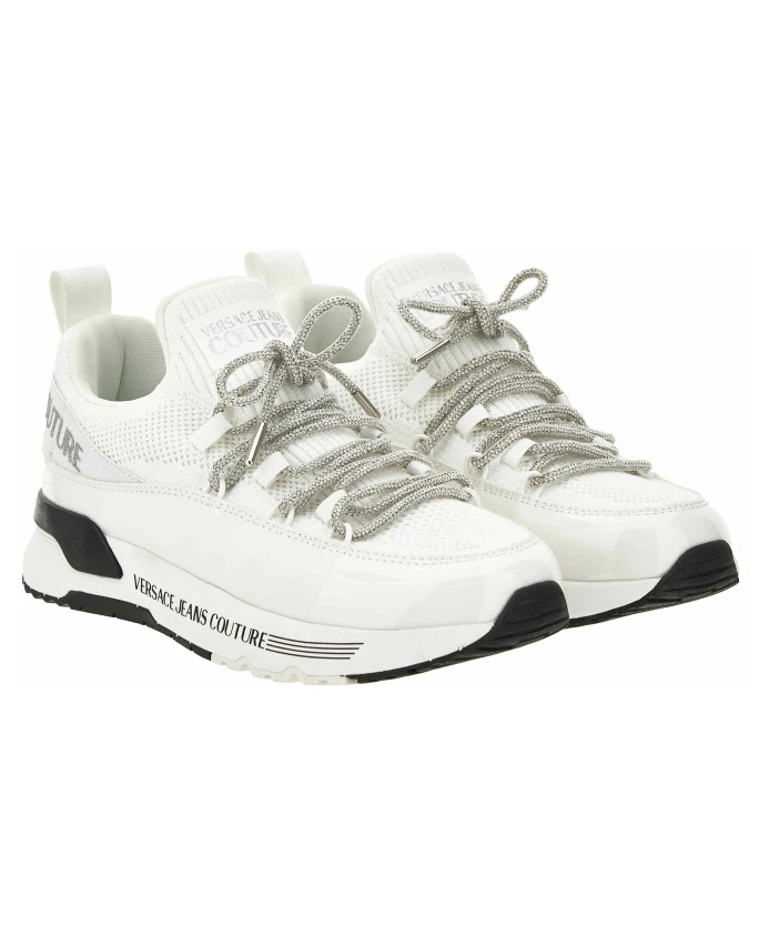 Versace представляет кроссовки, белые, из линии Versace Jeans, созданные для повседневного, неформального образа, с лаконичным силуэтом и фирменным логотипом. Ключевые характеристики: Белый | Полиэстер | Размеры и посадка: итальянские (IT) | Состав и уход: 100% полиэстер | 100% полиуретан