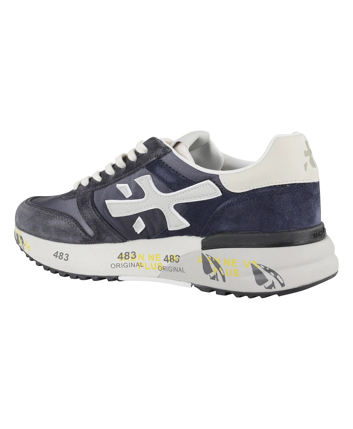 Подчеркните свой повседневный стиль с помощью этих синих кроссовок Premiata Mick. Изготовленные из сочетания технической ткани и замши, они имеют закругленный носок, кожаный язычок с логотипом, контрастную пятку с напечатанным логотипом, хлопковую шнуровку и резиновую подошву с логотипом.