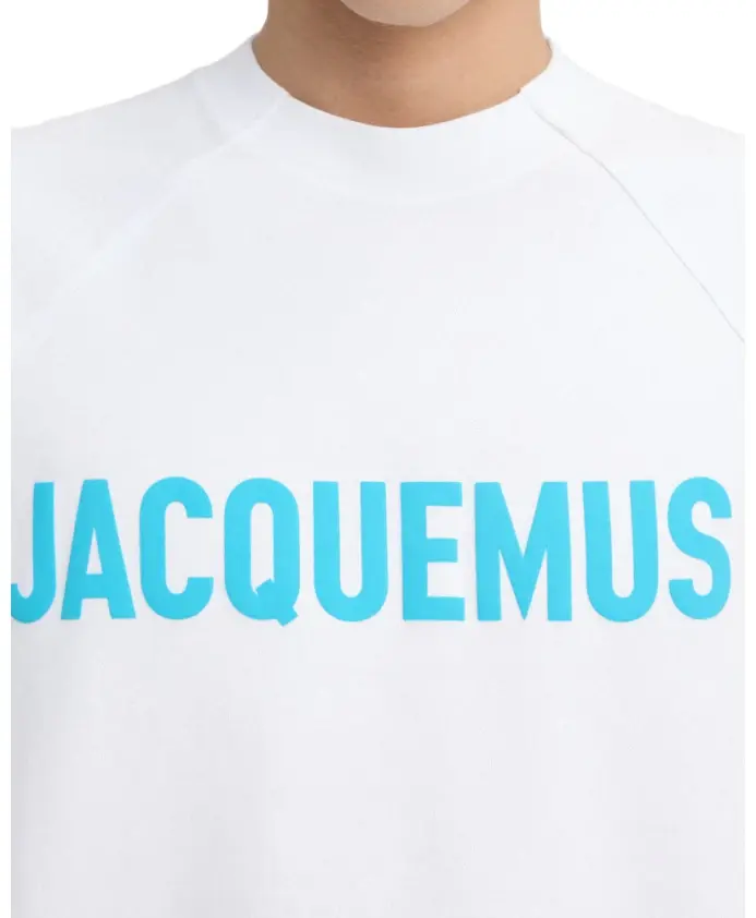 Дополните свой повседневный образ этой белой футболкой Jacquemus 'The Typo'. Изготовленная из 100% хлопка, она имеет классический частично ребристый круглый вырез, прямой низ, рукава реглан до локтя и синий логотип на груди. Свободный крой придает этой вневременной вещи современный вид.