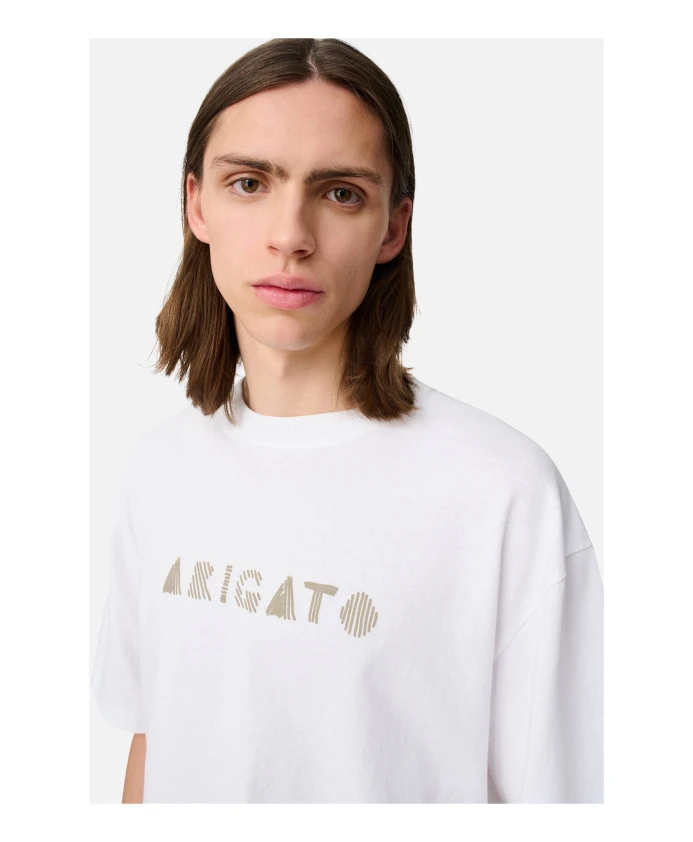 Футболка Annotate сшита из хлопка, имеет свободный силуэт и круглый вырез. Эта модель украшена контрастным логотипом «Arigato», нанесенным печатным шрифтом. Изделие выполнено из деликатной ткани с уникальной отделкой. Пожалуйста, обращайтесь с ним бережно. Рост модели 187 см, размер M.